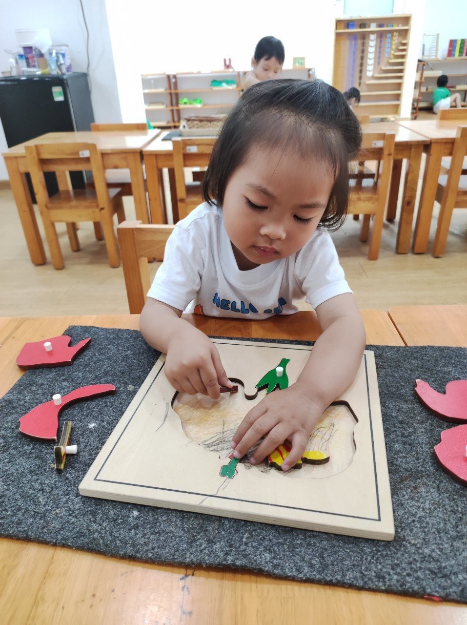 Mình thực sự bị thu hút đặc biệt bởi câu chuyện về những món đồ mà ở Clover gọi là “giáo cụ” – những món đồ quá đỗi bình thường đa phần nhà nào cũng có như: hạt đậu và muỗng, nay lại trở thành giáo cụ cho trẻ thực hành kỹ năng cầm nắm và tính kiên trì nhẫn nại. Sự bất ngờ chưa dừng lại đó, những giáo cụ cho trẻ học đa phần làm từ gỗ thân thiện môi trường và quan trọng hơn là không ảnh hưởng đến sức khoẻ non yếu của trẻ. Ngoài ra, chén-tô-dĩa và ly mà con trẻ sử dụng ở trường Clover lại toàn là đồ sành-sứ-thuỷ tinh, chỉ nghe thui mà mình thấy khá bối rối và nghĩ trong đầu “Ôi sao trường lại cho trẻ sử dụng những đồ bằng chất liệu dễ bể và có thể gây nguy hiểm cho trẻ khi xảy ra sự cố như đứt tay chẳng hạn?”