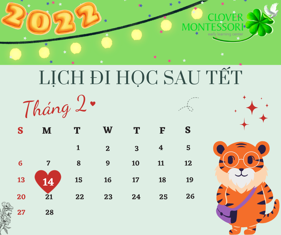 Căn cứ theo Công văn số: 140/QĐ-UBND ngày 12/01/2022 V/v Ban hành Kế hoạch thời gian năm học 2021-2022 đối với giáo dục mầm non trên địa bàn Thành phố Hồ Chí Minh, Trường mầm non Clover Montessori mong chờ được chào đón các con trở lại trường vào tháng 14/02/2022 sau thời gian nghỉ học dài do dịch bệnh COVID-19.